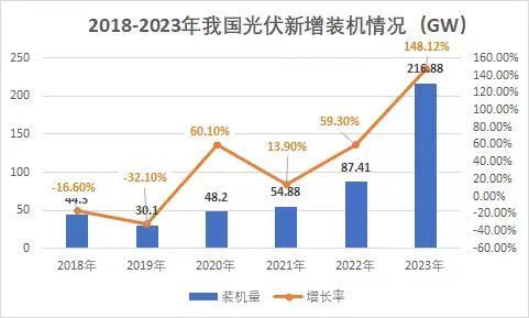 裝機(jī)量再度刷新!光伏市場(chǎng)持續(xù)火熱! 1月26日,國家能源局發(fā)布2023年全國電力工業(yè)統(tǒng)計(jì)數(shù)據(jù)。2023年1~12月光伏新增裝機(jī)216.88GW,同比增長(zhǎng)148.12%。 去年,對(duì)于光伏行業(yè)來講是爆發(fā)式增